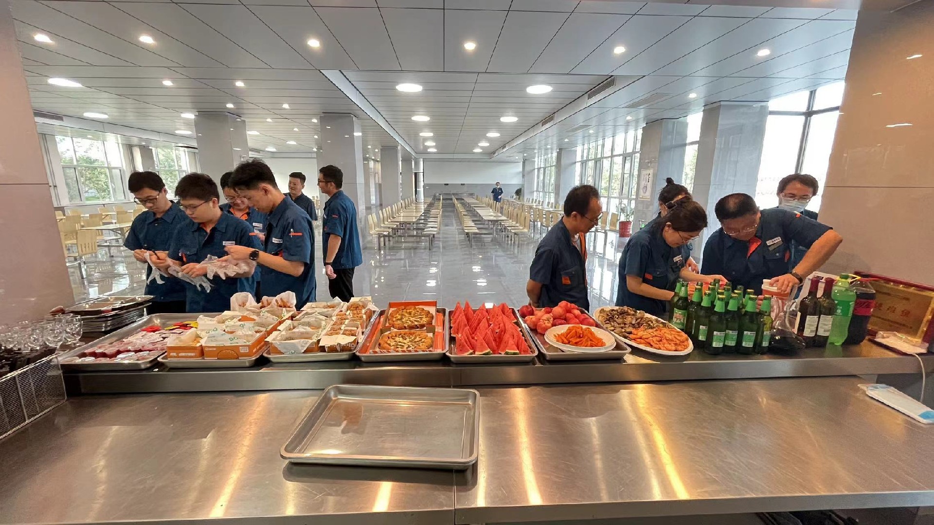 晚上,企業(yè)管理中心為導(dǎo)師及新員工們準(zhǔn)備了豐盛的歡迎冷餐會,按照膠東的習(xí)俗,每逢大事吃團(tuán)圓餃子,大家一起和面,一起拌餡,一起動手包水餃。師傅們紛紛對徒弟表示:“吃了水餃,咱們就是一家人了,好好干?!睅煾低降芎凸绢I(lǐng)導(dǎo)相對而坐,開懷暢飲,暢所欲言,自己包的餃子格外的香。